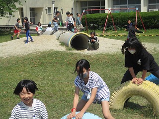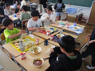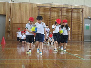 1年生は学校探検をしていました。
