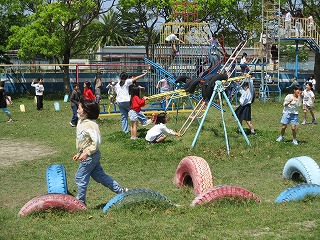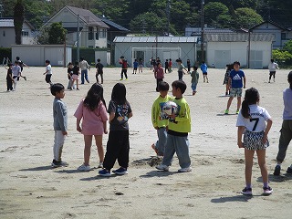 通学団ごとに分かれ、「砂の造形」のデザインを決めました。