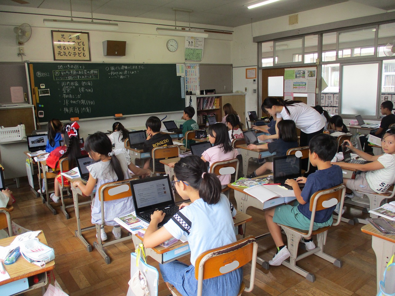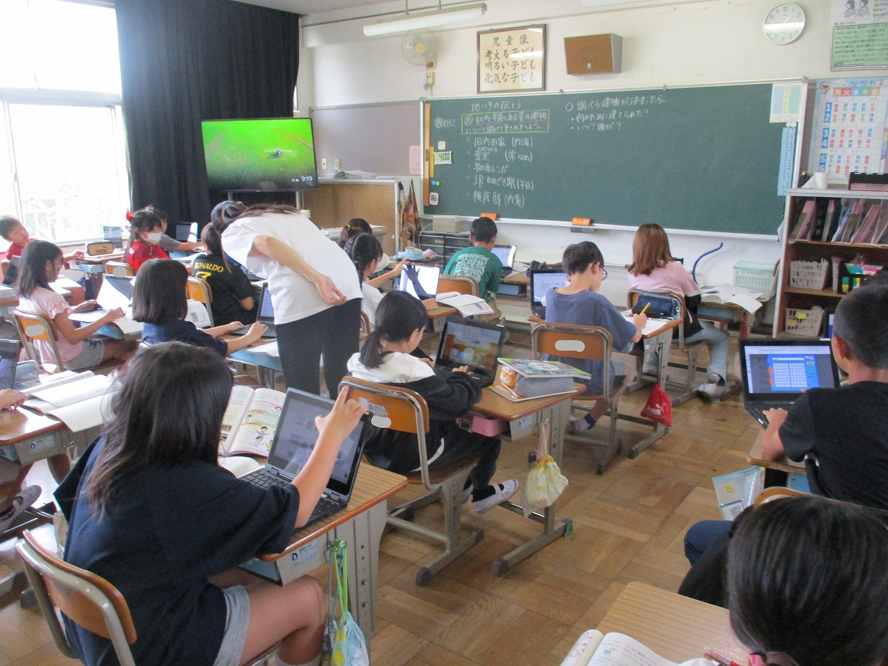 今日の1時間目に,4年生は社会の学習をしていました。「知多半島にある昔の建物について調べてまとめよう」という内容でした。調べる建物を決めたら,「誰が」「いつ」「どんな目的で建てたのか」について,タブレットを使用して調べていました。内海には,旧内田家や梅原邸があります。町内には,他にも昔の建物があります。調べることで,内海・山海への郷土愛が深まるとよいですね。