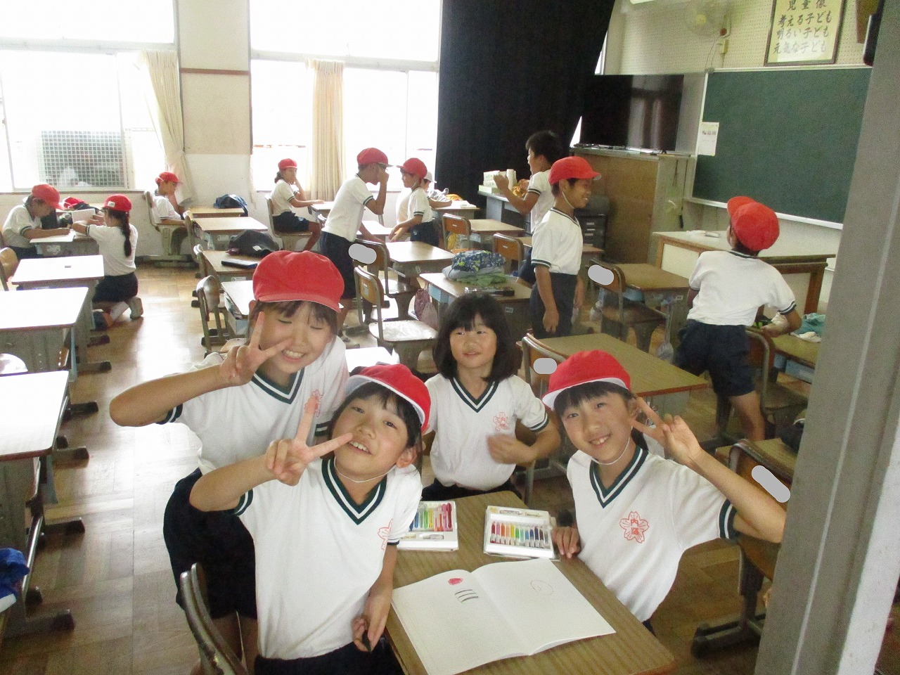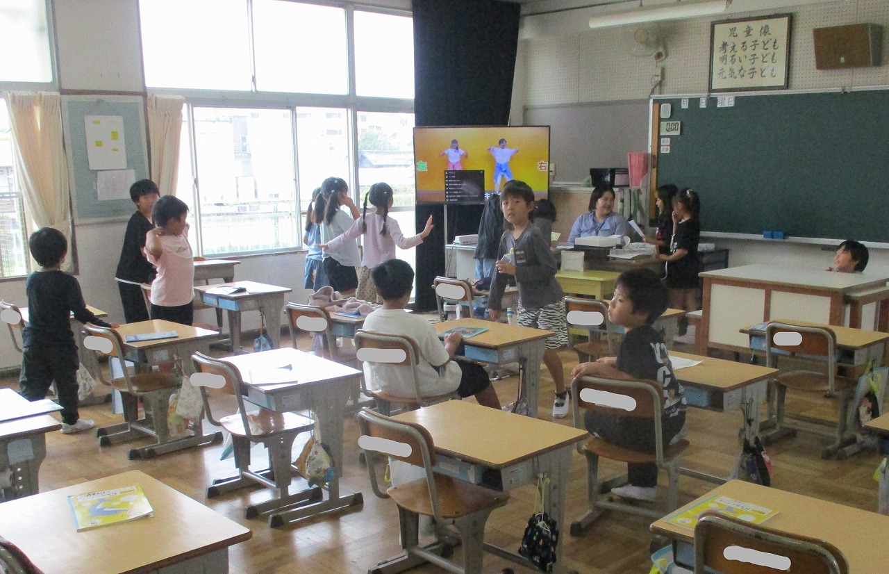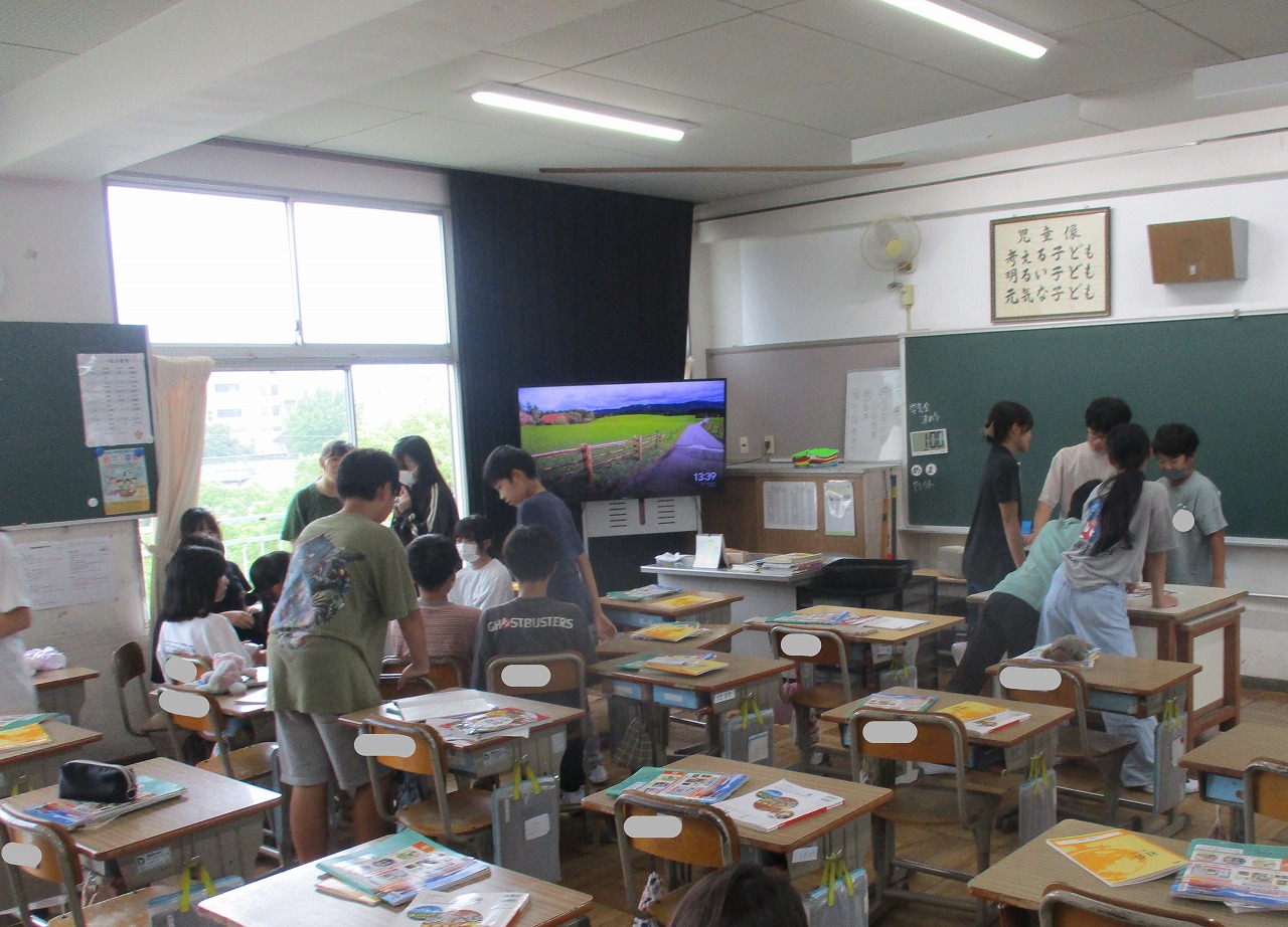 今日は運動場で遊べないため,昼放課は教室で過ごしていました。友達や先生と話をしたり,絵を描いたり,昔ながらの遊びである「かごめかごめ」をしたりして過ごしていました。