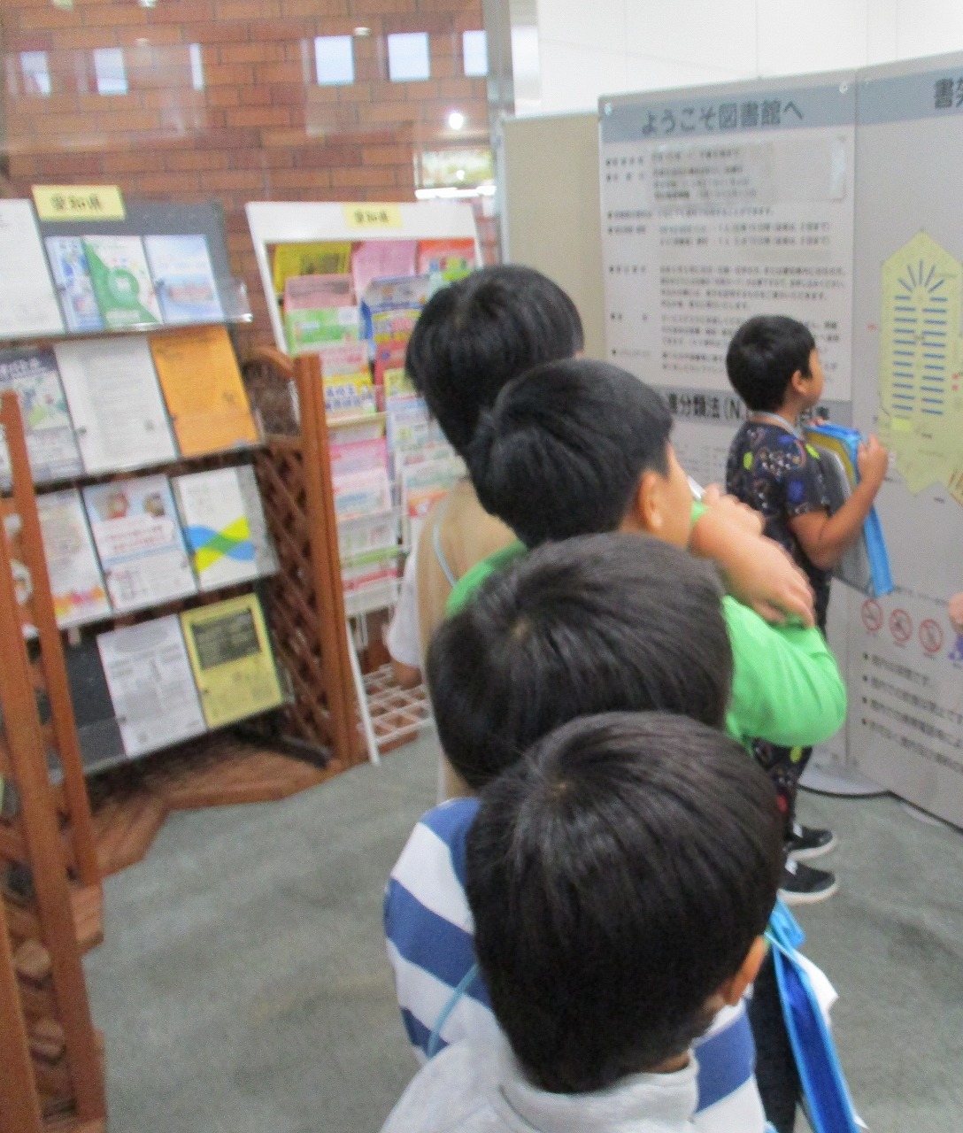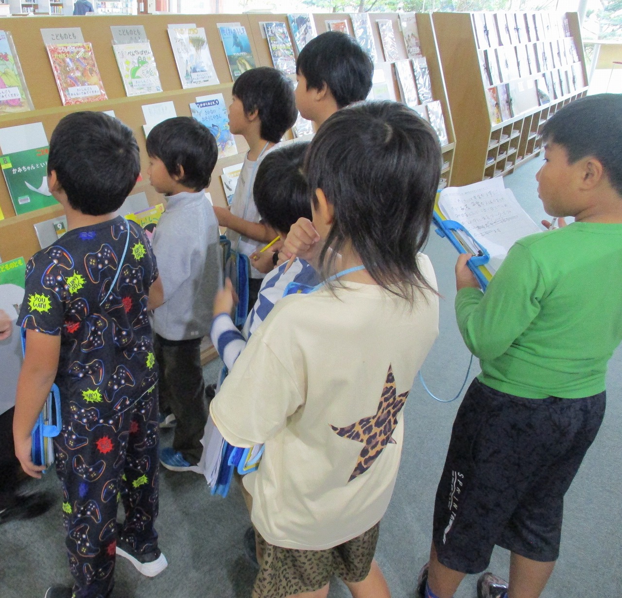 今日は,午前中に2年生が美浜町図書館に行きました。まずはじめに,館長さんや司書さんの話を聞きました。この図書館の歴史について話を聞きました。次に,館内を案内してもらい,返却ボックスの工夫などについて見学しました。学校の図書館と同じように,本が種類ごとに分類されて並べられていることを知りました。最後に,普段は入ることができない閉架書庫に入れてもらいました。ここには,貴重な本がたくさんありました。これからも,本をたくさん借りて読んでくださいね。
