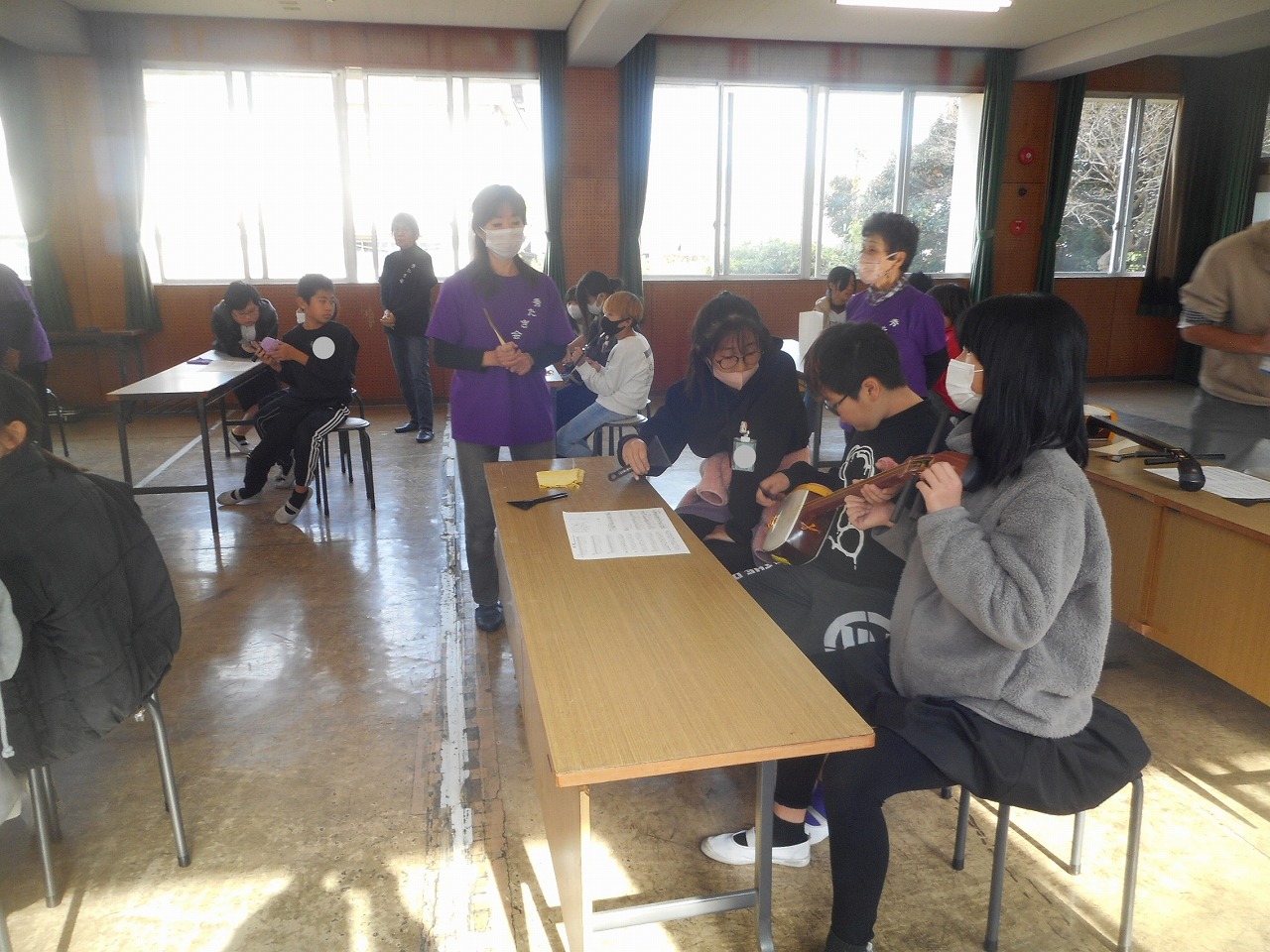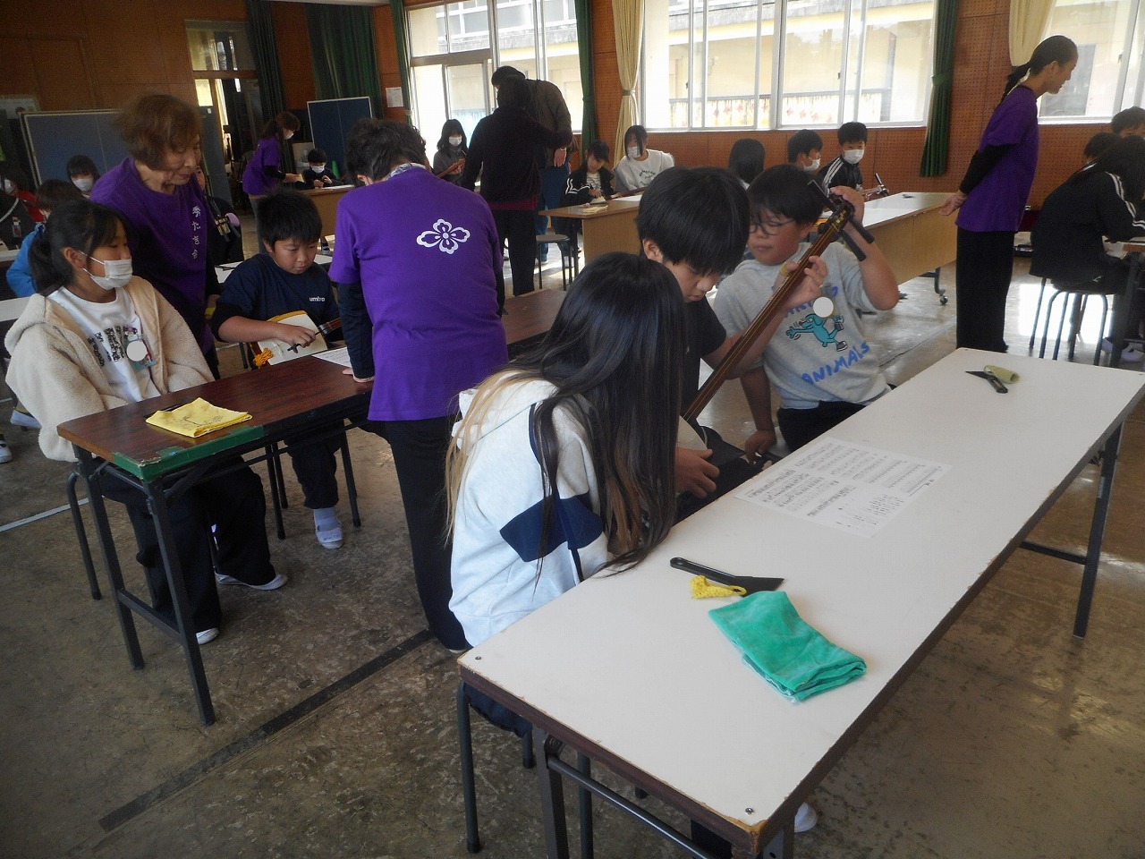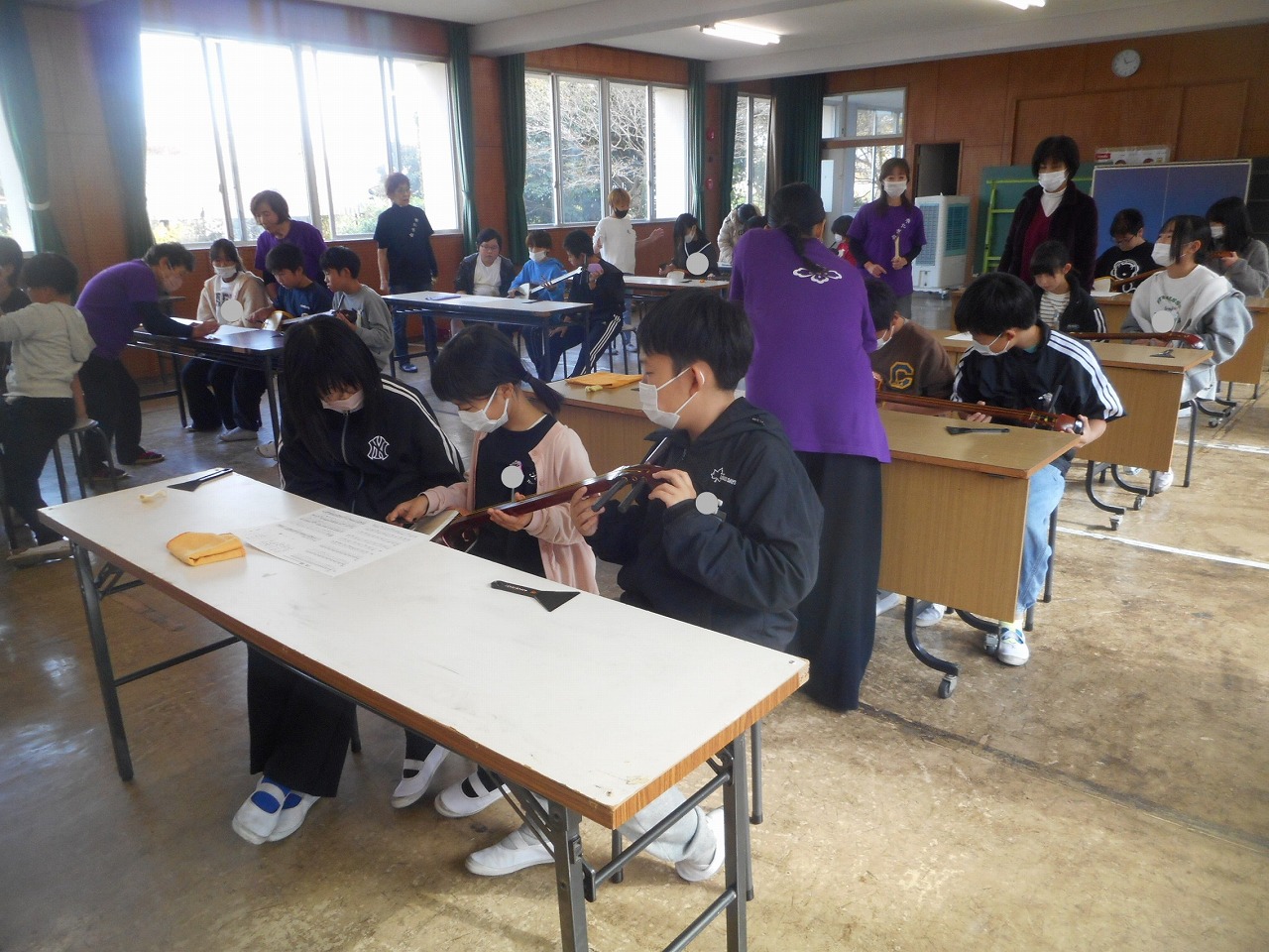 さらに,今日の3・4時間目は,5年生が三味線体験をしました。講師の先生方に来ていただき,三味線で「こきりこ節」を弾く体験をさせていだだきました。いったいどんな音を奏でることができたのでしょうか。貴重な体験ができましたね。