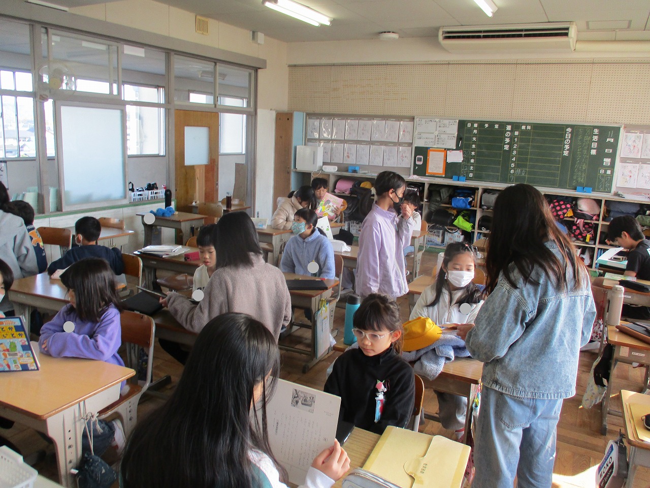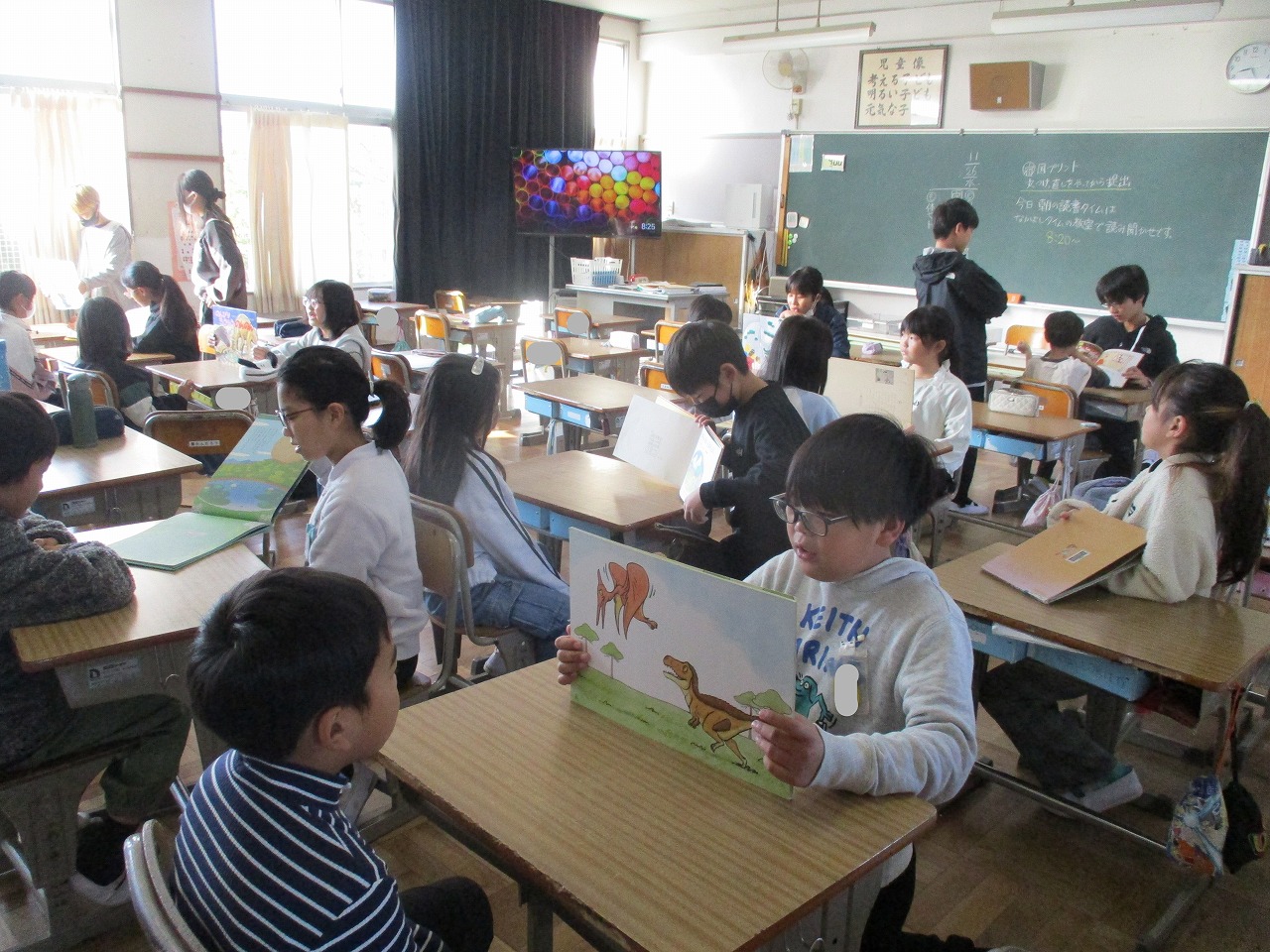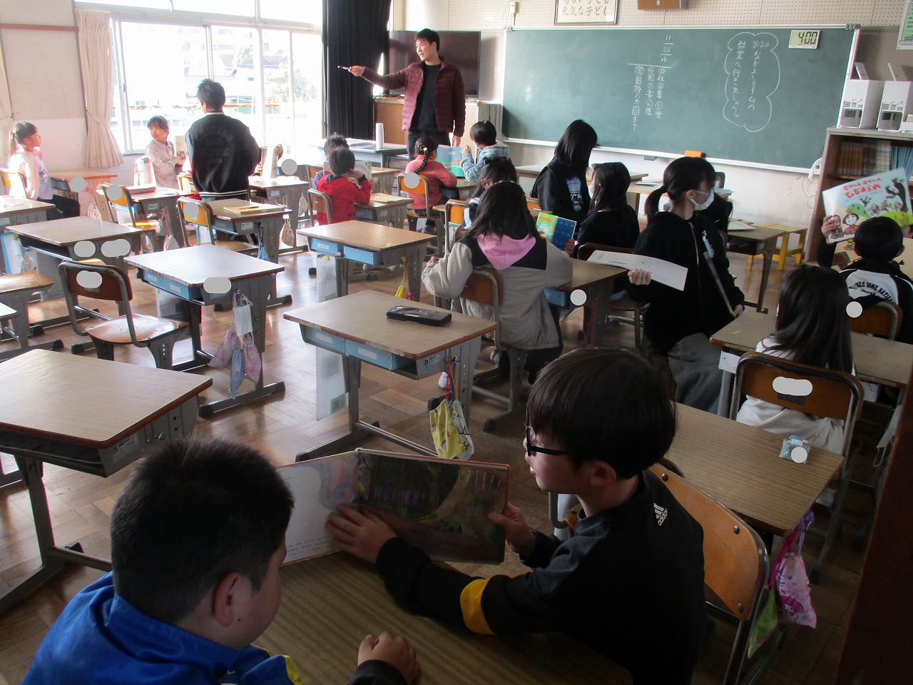 今日の朝の読書タイムは,なかよしグループの読み聞かせ会でした。4~6年生は,事前に低学年が喜んでくれそうな本や紙芝居を選んで読む練習をしていました。1~3年生は,おにいさんやおねえさんが読んでくれるのを真剣に聞いている姿が見られました。
