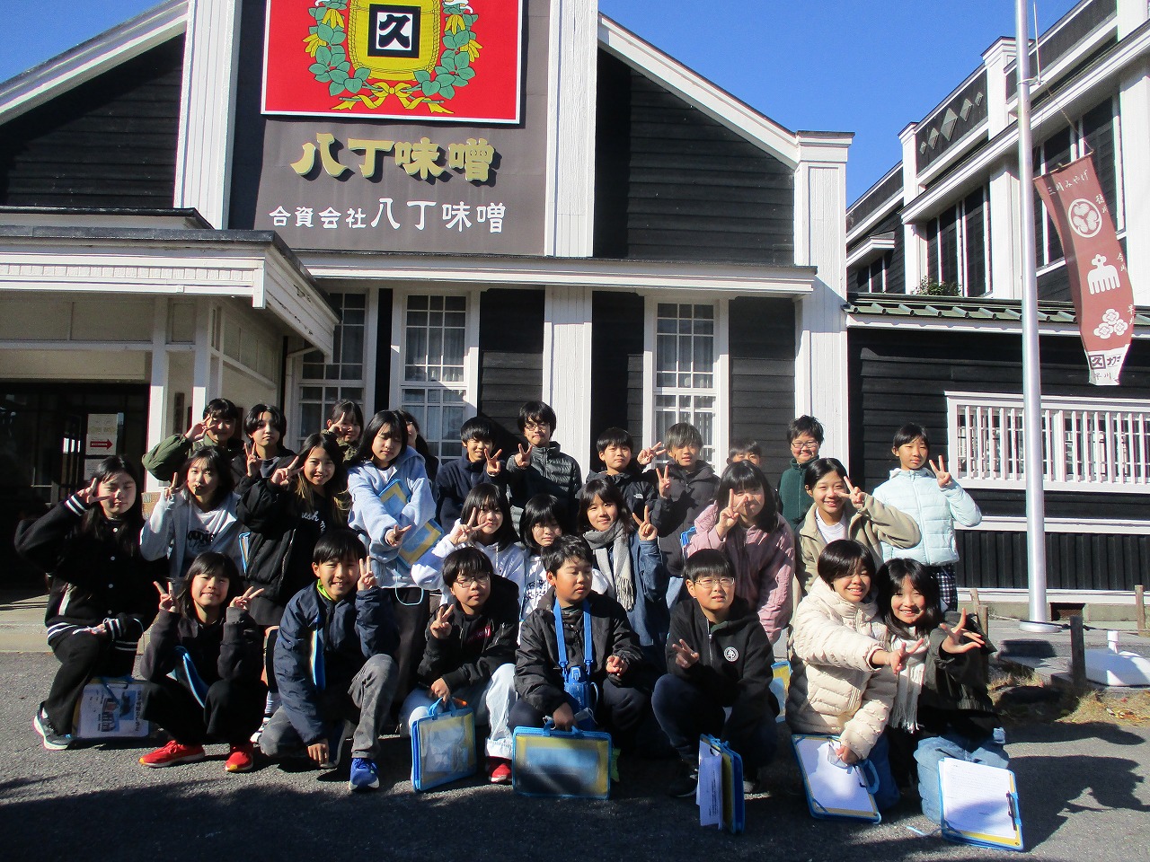 今日は,6年生が校外学習へ行きました。まず,カクキュー八丁味噌さんの「八丁味噌の郷」へ行きました。「八丁味噌」の由来は,徳川家康公生誕の岡崎城から西へ八丁(約870m)の距離にある旧八丁村で久右衛門さんが味噌造りをはじめ,いつしか「八丁味噌」と呼ばれるようになったそうです。現在の久右衛門さんは19代目だそうです。歴史を感じる味噌樽やその上に置かれた石の積み方などについて説明を聞き,さらに赤味噌に愛着をもつことができました。お土産の八丁味噌もいただきました。次に,徳川家康公が生まれた岡崎城へ行きました。歴史を勉強している6年生にとってとても勉強になったと思います。さらに,歴史が好きになってほしいです。