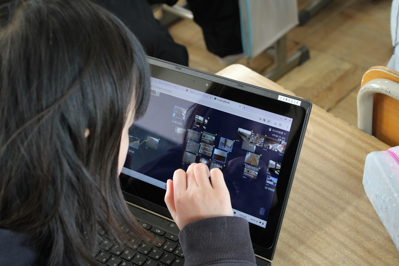 6時間目、6年生がタブレット端末を持って校内を歩き回り、あちこち写真を取っていました。何をしているのか尋ねると、愛校作業で何をするか内容の検討をするとのことでした。子どもたちは校内で気になった箇所を写真に撮り、教室に帰ると写真をロイロノートに公開して、全員で共有していました。