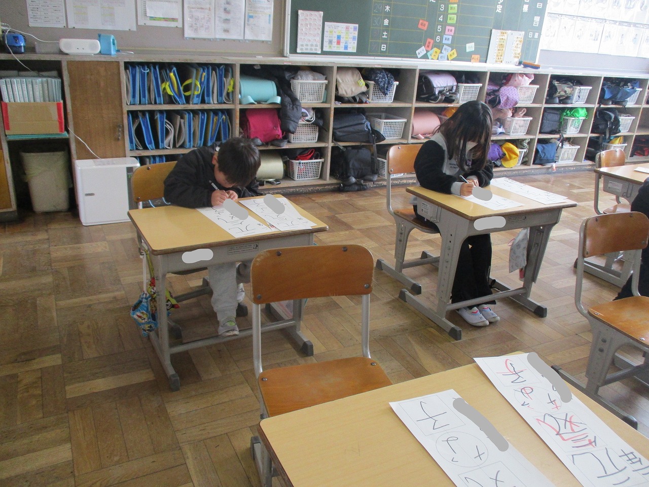 今日の1時間目に,2年生は書写で書き初めをしていました。お題は「元気な子」でした。2年生は,放課はいつも外で遊んでいるので,ぴったりのお題です。書いたら先生に見せるために並んでいました。「名前がいいね」「ここはもっと長く書くよ」と,アドバイスをもらっていました。2月の授業参観日は書き初めを掲示します。ぜひ,ご覧ください。