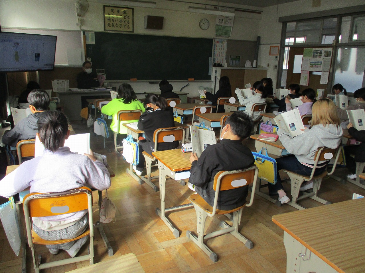 今日の2時間目は,4年生が国語の勉強をしていました。デジタル教科書の範読を聞いていました。教科書には,宇宙と青い地球のきれいな写真が載っていました。どうやらカメラを付けた風船を使って撮影したようで,風船を使ってこんなに素敵な宇宙の写真が撮れるんだととても興味深い内容でした。