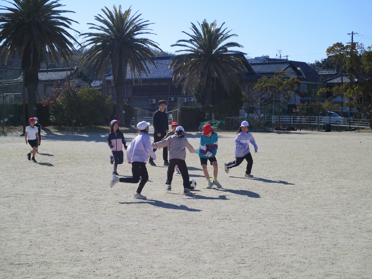 今日の1時間目は,3年生が体育でサッカーをしていました。3年生は,放課もサッカーをしている子がたくさんいます。試合をしばらく見ていましたが,ボールに集まるのではなく,パスしてもらえる場所に移動している姿が見られました。